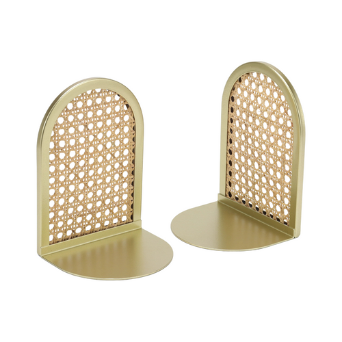 Golden Rattan Decorative Tabletop Bookends Modern Home Decor Accessory